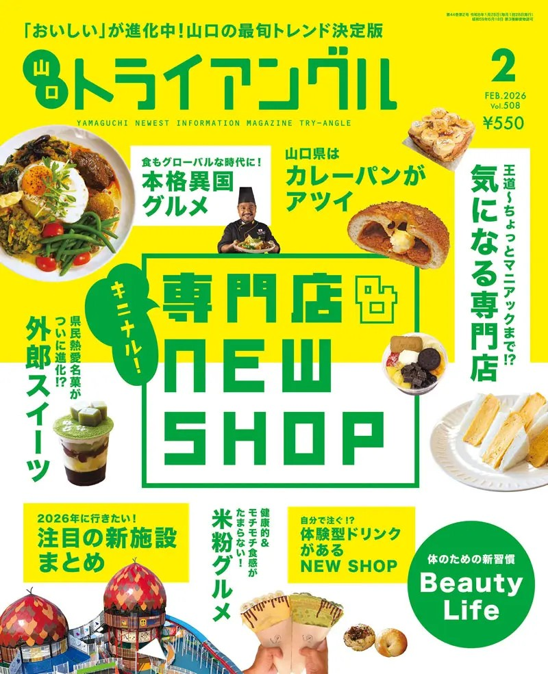山口トライアングル2月号の特集『キニナル!専門店&NEW SHOP』に掲載いただきました。